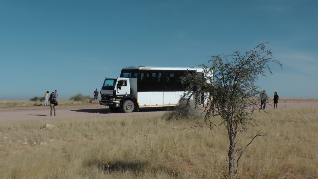 In Windhoek, de hoofdstad van Namibië worden we opgewacht door Manda, onze gids en Tomile, onze chauffeur. We maken nu ook kennis met onze reisgenoten.